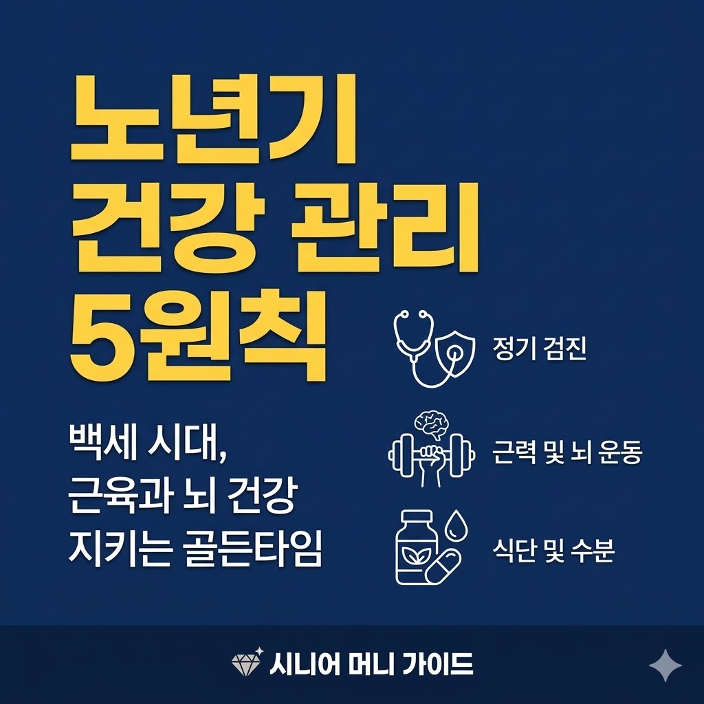 노년기 건강의 핵심인 정기 검진, 근력 운동, 단백질 식단, 수면 습관, 마음 관리법을 상세히 정리했습니다. 시니어 머니 가이드가 제안하는 활기찬 노후 준비를 위한 건강 골든타임을 지금 확인하세요.